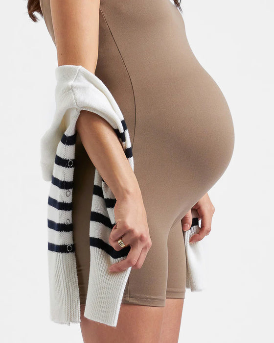 One Piece Luxe Knit Short Maternity Body Suit - Mocha